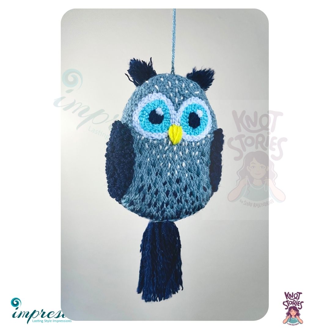 Blue Owl Single Sided Punch Needle Embroidered Keychain