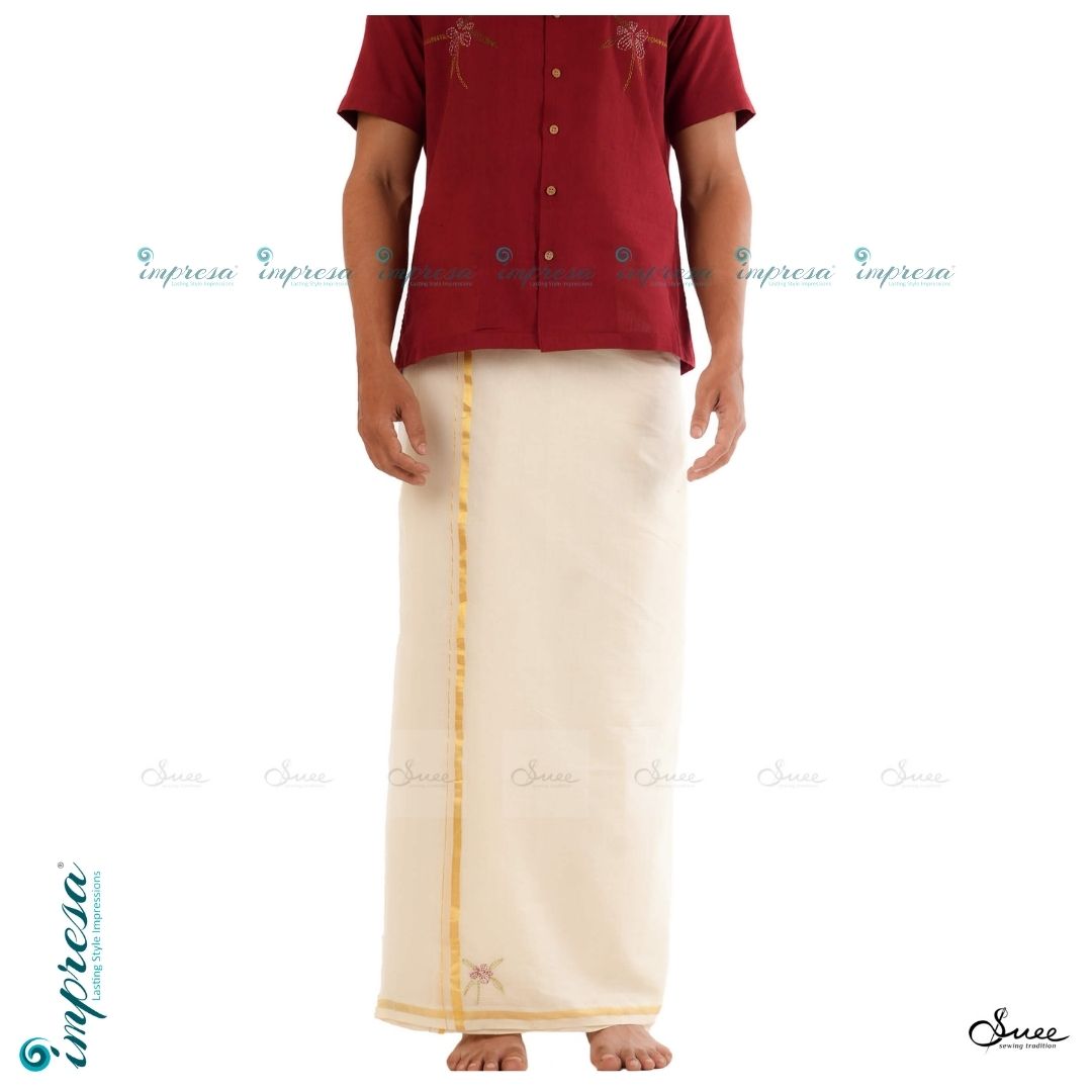 Men's Handloom Mundu with Thumba Poovu Embroidery